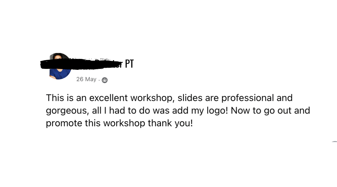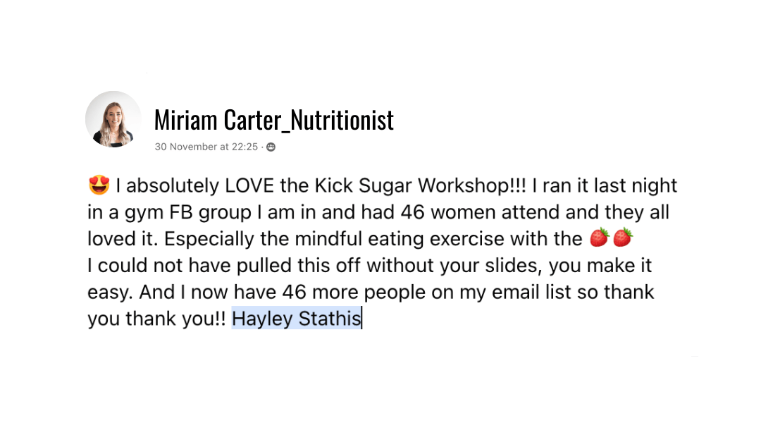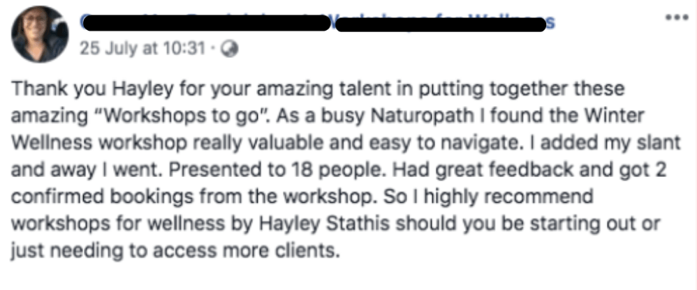 Not my stuff though! This workshop was created by me many years ago, to use in my own business. I use it inside all my programs and it's also helped the thousands of practitioners & coaches who have purchased it. Just see the testimonials.