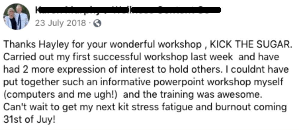 The Kick Sugar Workshop is loved by hundreds of Health & Fitness Professionals just like you!